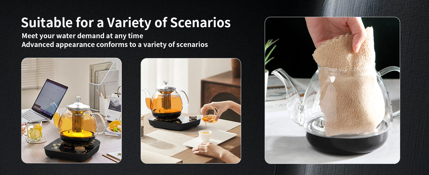 This professional, compact teapot integrates all the necessary functions for steaming, boiling, brewing, pouring, and keeping warm.